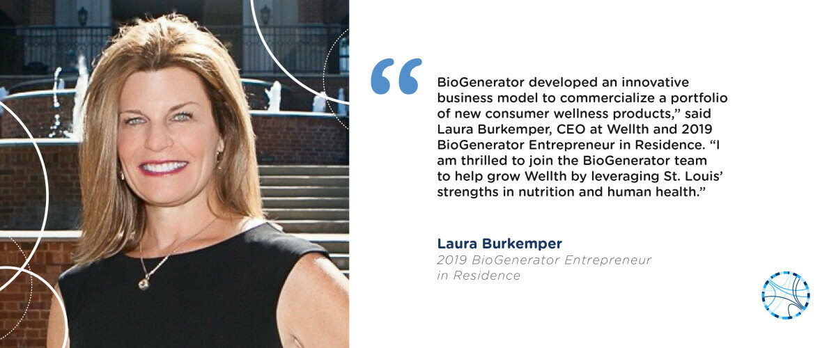 “BioGenerator developed an innovative business model to commercialize a portfolio of new consumer wellness products,” said Laura Burkemper, CEO at WELLTH Holdings and 2019 BioGenerator Entrepreneur in Residence. “I am thrilled to join the BioGenerator team to help grow WELLTH by leveraging St. Louis’ strengths in health and wellbeing.”