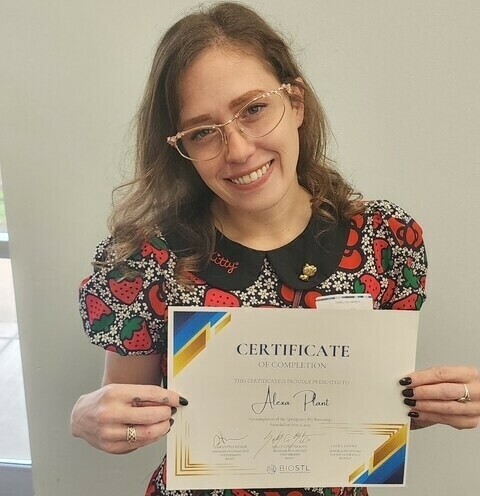 Alexa joined a new cohort of Bio Boot Camp, taught by St. Louis Community College and funded by BioSTL, a free training course that teaches lab and biomanufacturing fundamentals–essential skills for entering the bioscience workforce in St. Louis.
